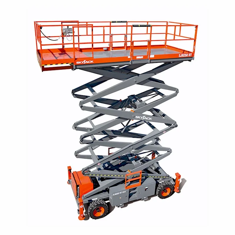 سيزر لفت أرض وعرة (Rough Terrain Scissor Lift): مصمم خصيصاً لمواقع العمل الخارجية الصعبة. يتميز بنظام دفع رباعي وإطارات للتضاريس الوعرة مع دعامات تثبيت ومنصة قابلة للتمديد. مثالي لمواقع البناء والمشاريع الخارجية.